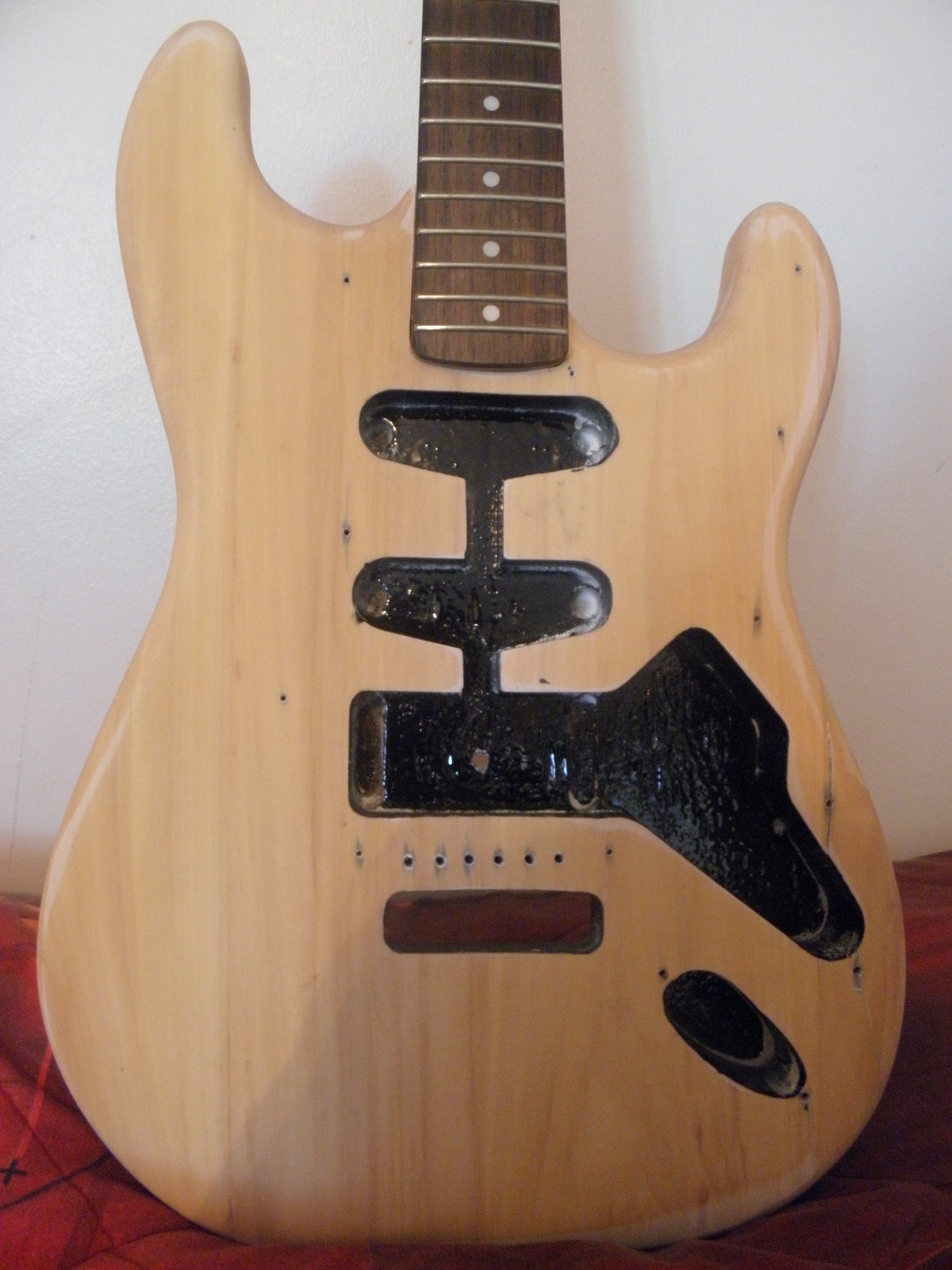 Eli aloitin kitaran maalaus projectin. Nyymit ehdottaa millainen kuva/kuviointi ja minkä värinen kitarasta tulee. Kuva liittyy, siinä kitarani, jonka hion juuri.